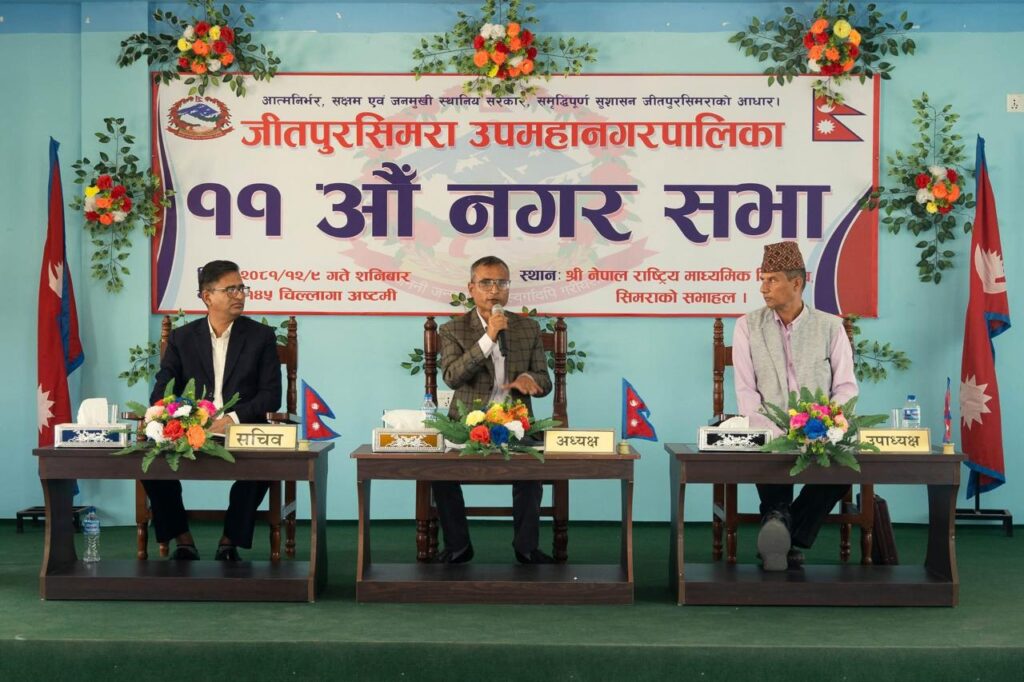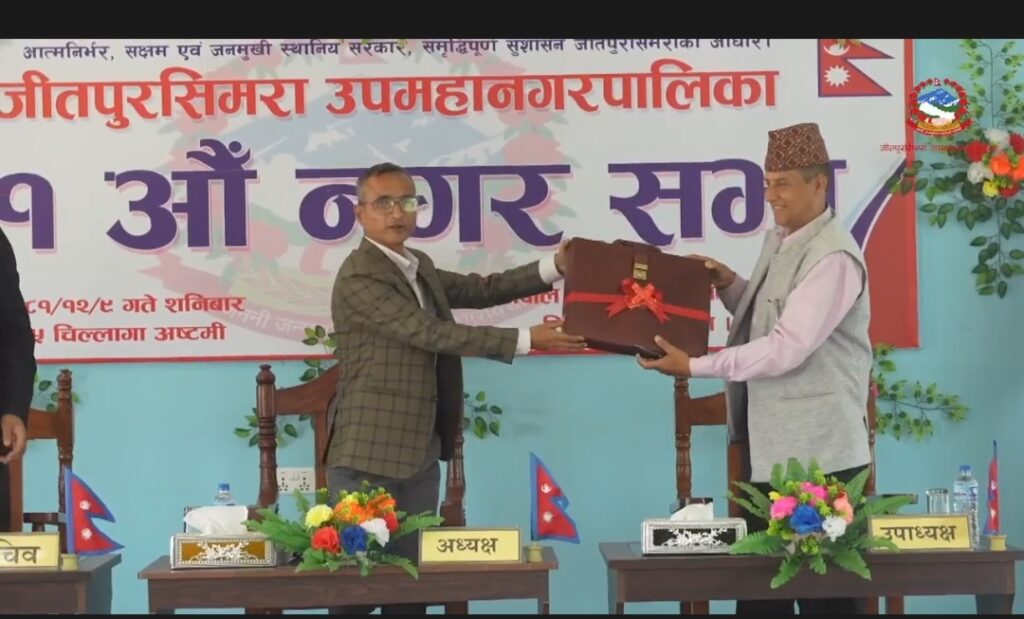 अखिलेश यादव।०९ चैत्र।सिमरा । – जीतपुरसिमरा उपमहानगरपालिकाको ११औं हिउँदे अधिवेशन शनिबार नेपाल राष्ट्रिय माध्यमिक विद्यालय, सिमरामा सम्पन्न भएको छ। अधिवेशनमा चालू आर्थिक वर्ष २०८१/०८२ को बजेट कार्यान्वयनको समीक्षासहित संशोधित बजेट पेश गरिएको छ।