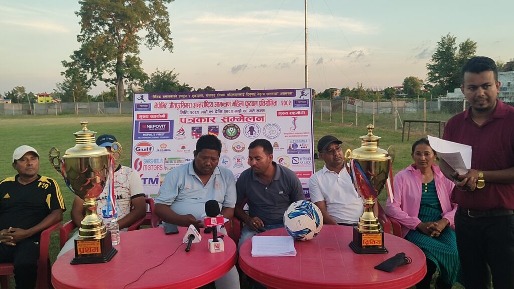 १९ भदौ ,सिमरा । नेपोभिट जीतपुरसिमरा अन्तर्राष्ट्रिय आमन्त्रण महिला फुटबल प्रतियोगिताको सम्पूर्ण तयारी पूरा भएको छ। सिमरा भेट्रान क्लबले बिहीबार सिमरा रंगशालामा पत्रकार सम्मेलन गरी प्रतियोगिताबारे जानकारी दिएको हो। भदौ २१ गतेदेखि सुरु हुने प्रतियोगिताको उद्घाटन जीतपुरसिमरा उपमहानगरपालिकाका नगरप्रमुख राजन पौडेलले गर्नेछन्। मुख्य सहयोगी संस्थाको रुपमा उपमहानगरपालिकाको कार्यालय रहेको आयोजक क्लबले जनाएको छ।