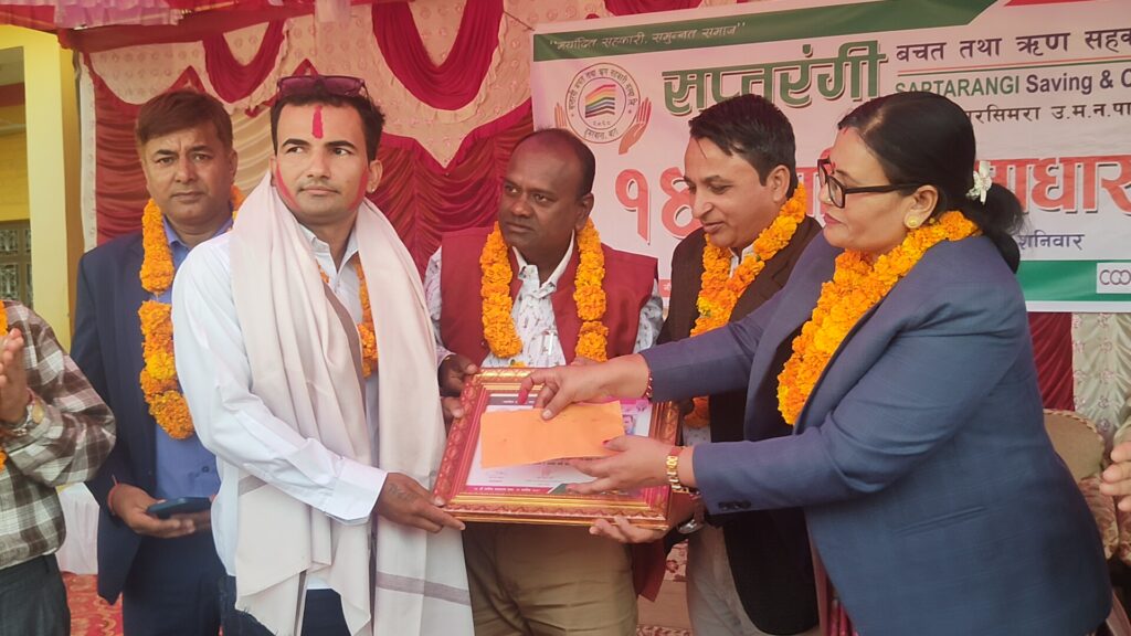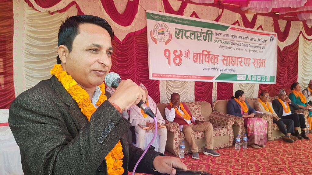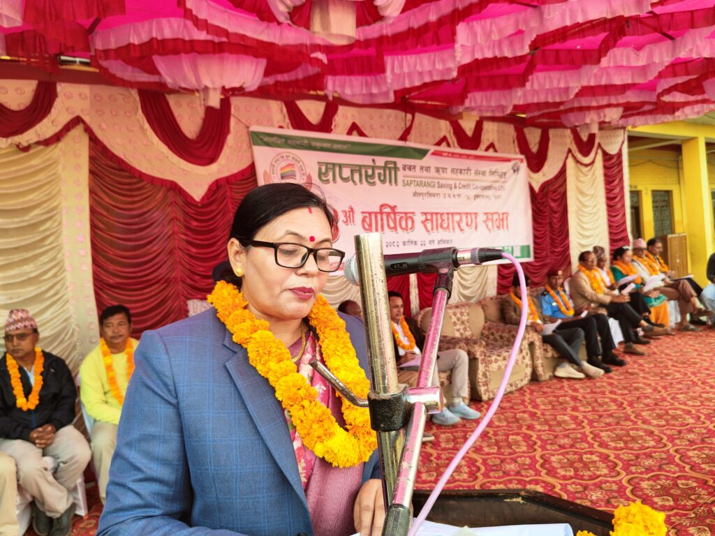 कार्तिक २३ सिमरा : सप्तरंगी बचत तथा ऋण सहकारी संस्था लिमिटेड डुमरवनाले आफ्नो १४औँ वार्षिक साधारण सभा धुमधामपूर्वक सम्पन्न गरेको छ। शनिबार रजघट्टास्थित जनता माध्यमिक कृषि प्राविधिक विद्यालयको प्राङ्गणमा आयोजित कार्यक्रममा संस्थाका अध्यक्ष शोभा केसीको अध्यक्षता रहेको थियो।