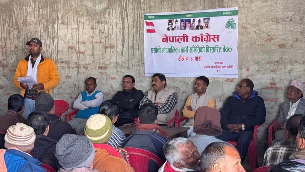 माघ २१ कलैया : बाराको क्षेत्र नम्बर ४ मा चुनावी चहलपहल तीव्र बन्दै गएको छ। यही क्रममा नेपाली कांग्रेसले एकै दिन बुधबार दुई पालिकामा संगठनात्मक बैठक सम्पन्न गरेको छ। प्रसौनी गाउँपालिका र फेटा गाउँपालिका कार्यपालिका समितिको बैठक सम्पन्न भएको हो। नेपाली कांग्रेसका नेता शेखर भण्डारीका अनुसार प्रतिनिधिसभा सदस्य पदका उम्मेदवार श्यामबाबु गुप्ताको पक्षमा माहोल थप मजबुत बनाउने उद्देश्यले एकै दिन दुई पालिकामा कार्यक्रम आयोजना गरिएको हो।
