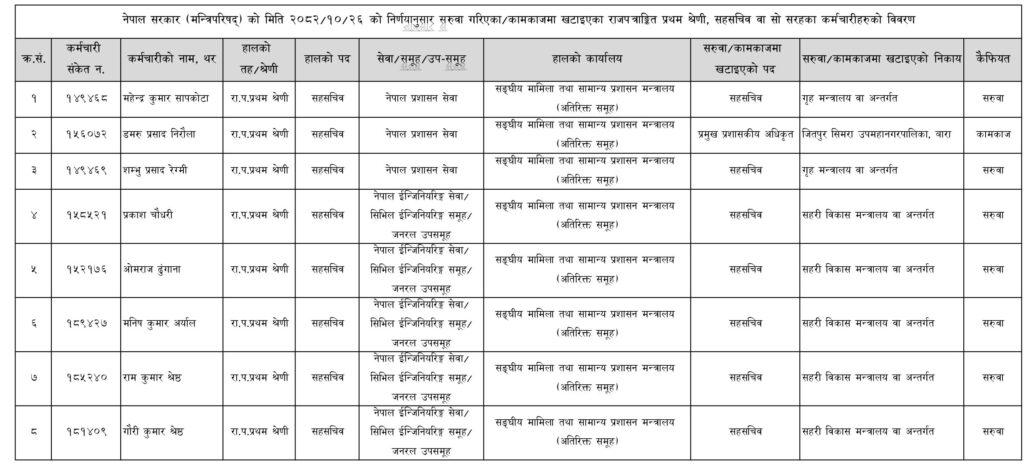 मन्त्रालयले गत पुस ११ गते उनलाई जिम्मेवारी सुम्पेको भए पनि चौधरी पालिकामा ढिलो हाजिर भएका थिए र जम्मा तीन दिन मात्र उपस्थित भएर फर्किएका थिए। चौधरीले हाजिर भएको छोटो अवधिमा मात्र सामाजिक सुरक्षा भत्ता वितरण र केही कर्मचारीको तलब भत्ता निकासा जस्ता कामहरू सम्पन्न गरेका थिए। हाल डम्बरु प्रसाद निरौला पालिकामा कार्यरत छन् र निर्वाचनको अचार सहिता लागू भएकाले मन्त्रालयले उनलाई सरुवा नगरी प्रत्यक्ष कामकाजका लागि पठाएको हो। यसैबीच, होलीमा समेत तलब नपाउने तथा सामाजिक सुरक्षा भत्ता लगायतका सुविधा रोकिएका कर्मचारीहरूले पनि राहत पाउने आशा गरिएको छ।