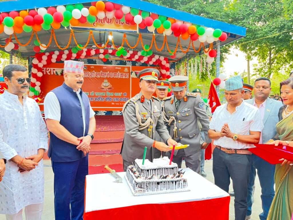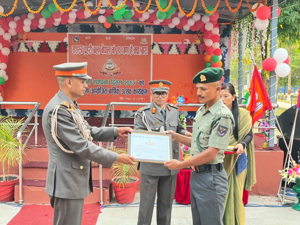 १० बैशाख ।सिमरा : सशस्त्र प्रहरी बल, नेपाल नं. १२ गण हेडक्वार्टरले बिहीबार आफ्नो १९ औँ स्थापना दिवस विविध कार्यक्रमका साथ मनाएको छ। सशस्त्र प्रहरी बल, नेपाल नं. २ छिन्नमस्ता बाहिनी मुख्यालय बर्दिवासका बाहिनीपति तथा सशस्त्र प्रहरी नायब महानिरीक्षक (डिआइजी) कृष्ण ढकालको प्रमुख आतिथ्यतामा आयोजना गरिएको कार्यक्रममा सीमा सुरक्षा र अपराध नियन्त्रणमा सशस्त्र प्रहरीको भूमिका विशेष रूपमा चर्चा गरिएको थियो। कार्यक्रममा बाराका प्रमुख जिल्ला अधिकारी धर्मेन्द्र झाले नेपाल–भारत खुला सीमाबाट हुने चोरी, तस्करी नियन्त्रण, सीमा सुरक्षा तथा विपद् व्यवस्थापनमा सशस्त्र प्रहरीले प्रभावकारी काम गर्दै आएको उल्लेख गरे।