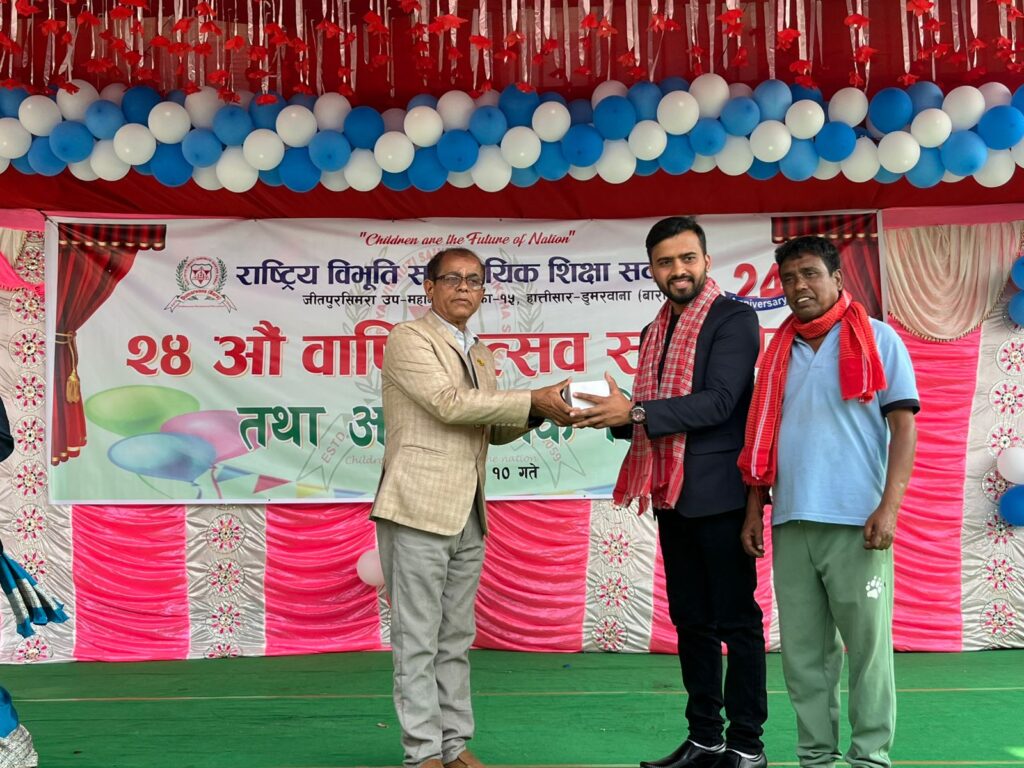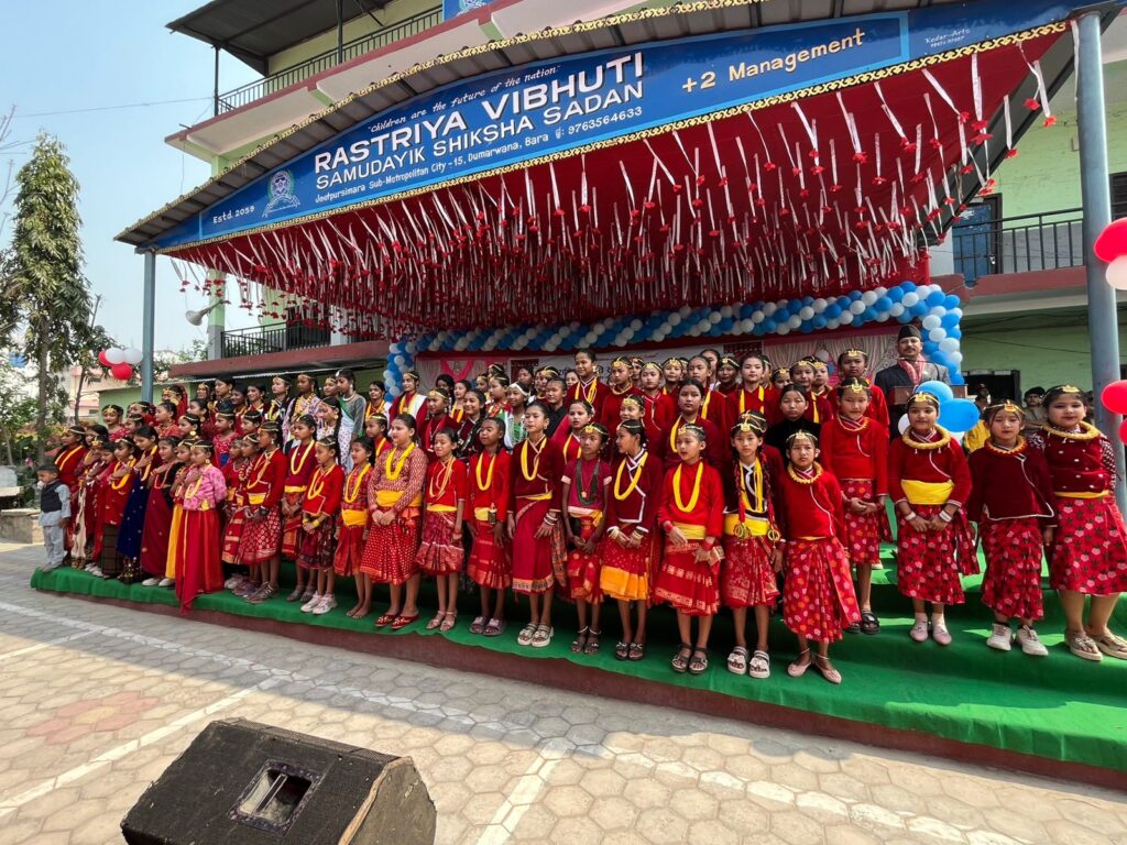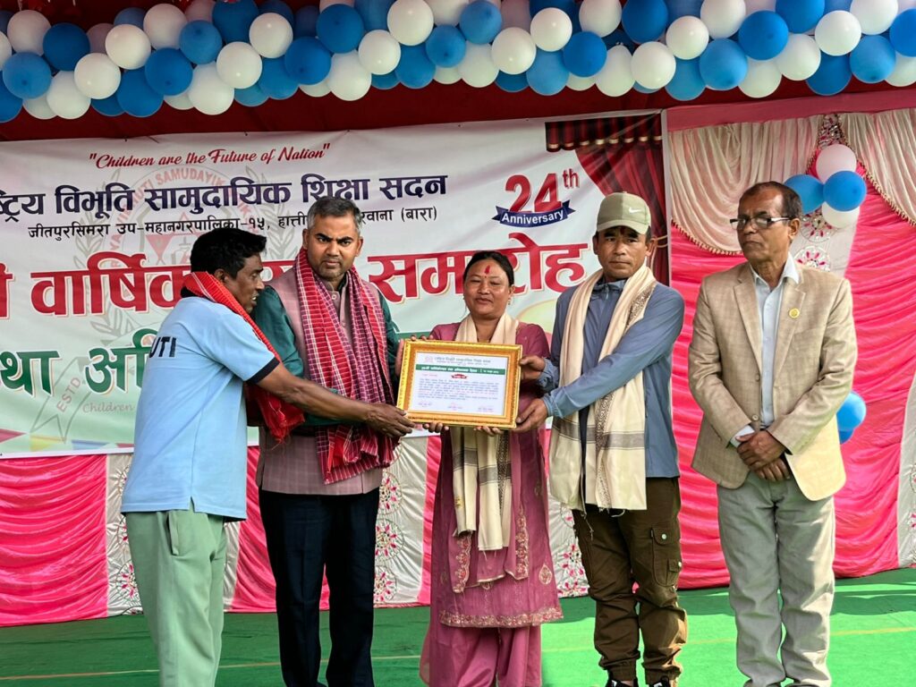 फागुन १० सिमरा : बाराको जीतपुरसिमरा–१५ डुमरवानास्थित रहेको राष्ट्रिय विभूति सामुदायिक शिक्षा सदनले आफ्नो २४ औं वार्षिकोत्सव तथा अभिभावक दिवस आइतबार सम्पन्न गरेको छ। विविध सांस्कृतिक प्रस्तुति, सम्मान कार्यक्रम र फुड फेस्टिबलसहित आयोजना गरिएको समारोहले विद्यालय परिसर उत्सवमय बनेको थियो। विद्यालय व्यवस्थापन समितिका अध्यक्ष विदुर खड्काको अध्यक्षता तथा जीतपुरसिमरा उपमहानगरपालिकाको नगरप्रमुख राजन पौडेलको प्रमुख आतिथ्यतामा कार्यक्रम सम्पन्न भएको हो।
